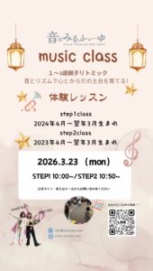 音楽を身体で感じ、聴き、歌い、動き、音と仲良くなる時間。